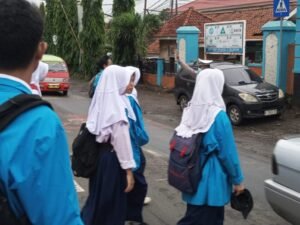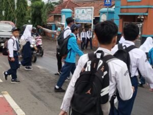 Kanit Lantas Polsek Pulomerak Bantu atur lalin di depan SMP 3 Cilegon