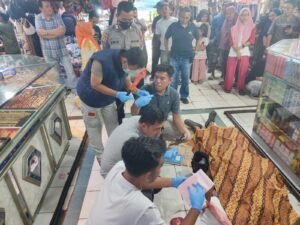 Serang – Personel Polresta Serang Kota mengevakuasi seorang pedagang dompet penyimpanan emas yang meninggal dunia secara mendadak di Pasar Rau Trade Centre, Sabtu (21/2/2026) sekitar pukul 12.30 WIB.